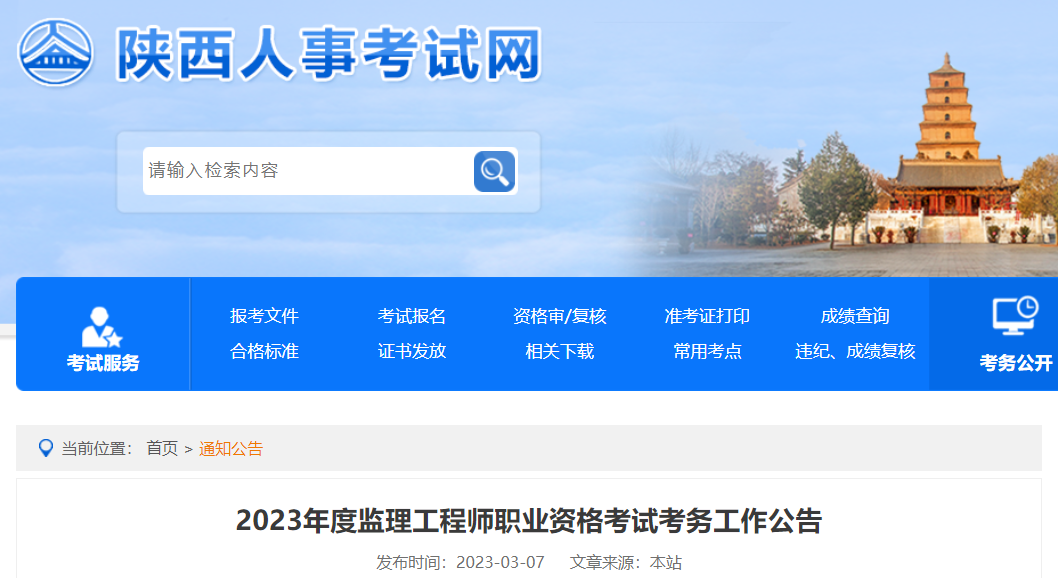 陕西省2023年度监理工程师考务安排