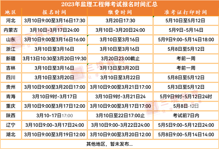 【新增4地】共13地发布2023年监理工程师考试安排,速看