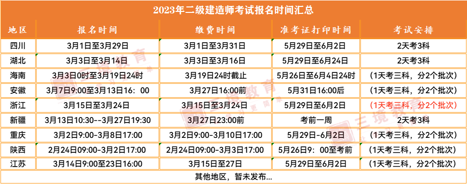 新增1地发布2023年二建报名通知,1地今天报名结束~