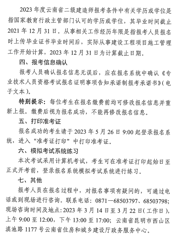 | 报名入口 | 云南省建设监管公共服务平台及云南省建设注册考试中心官网 |