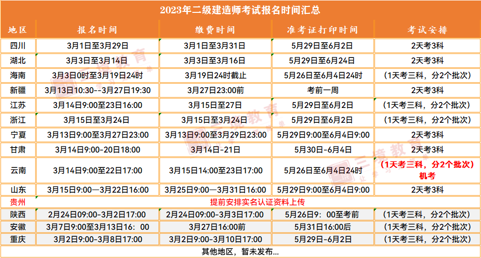 近日新增,山东、云南、甘肃、贵州发布了二建报考动态,具体报考内容一起来看!