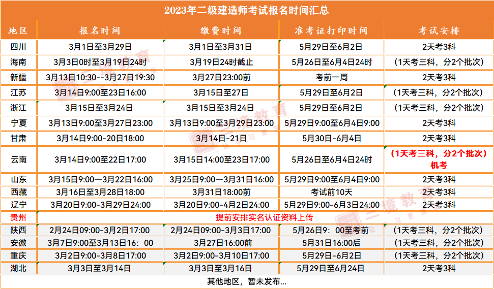 【注意】又新增2地(共15地)发布2023二建考试报名通知!