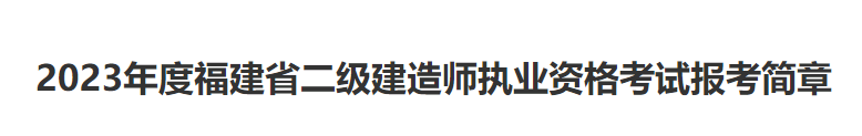 福建2023年二级建造师考试考务文件已经公布,福建2023年二级建造师报名时间、报名缴费等相关工作安排如下。