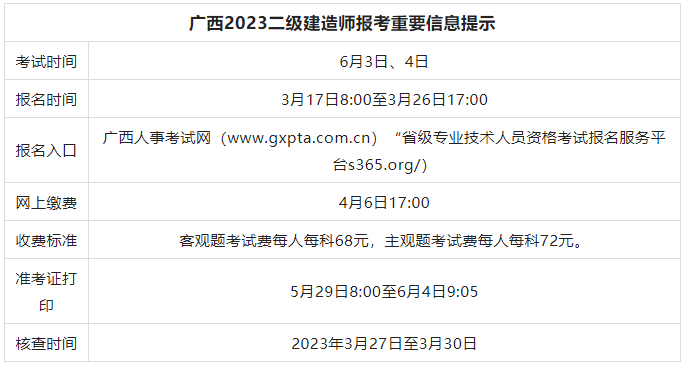 广西2023年二级建造师考试考务文件已经公布,广西2023年二级建造师报名时间、报名缴费等相关工作安排如下: